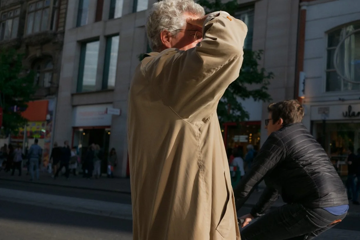 Faces, pauses, and fleeting encounters: fragments of a city moving between light and shadow.